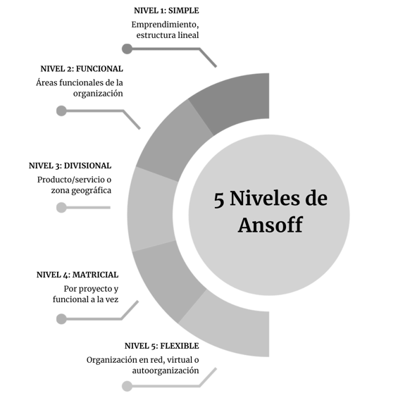 Enfrentarse a la complejidad y la turbulencia del entorno empresarial requiere una estructura organizacional adaptable. El profesor Jorge Etkin y el Dr. Igor H. Ansoff sugieren que las empresas deben ser vistas como sistemas complejos, cuyas estrategias y capacidades estructurales deben estar alineadas con el grado de cambio y complejidad del entorno. Ansoff propone cinco niveles de organización, desde estructuras simples hasta flexibles, cada una adecuada a diferentes grados de complejidad y desafíos.